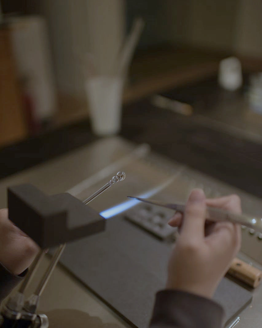 "Each piece is handcrafted from boro glass using traditional lampworking techniques. Shaped by fire and refined by hand, our jewelry reflects the beauty of glass in its purest form Unique, Transparent, and Timeless."