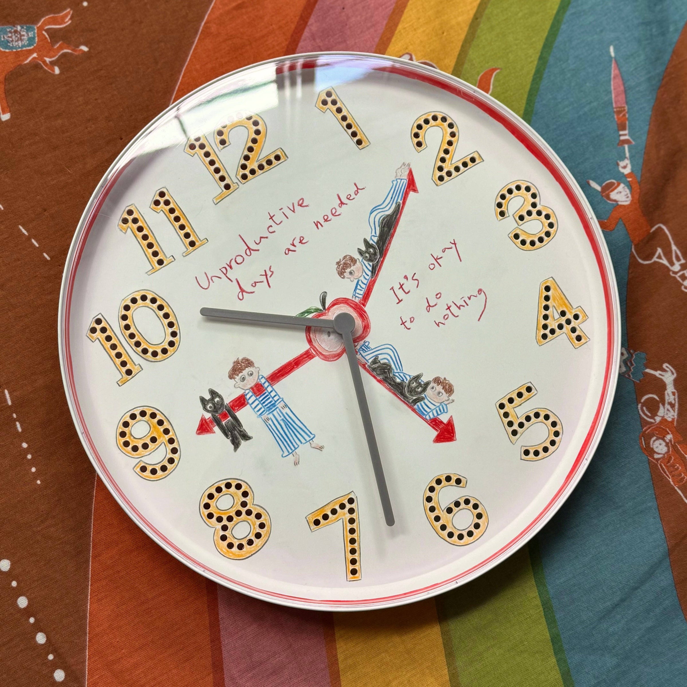 Hand-Drawn Wall Clock (Red)