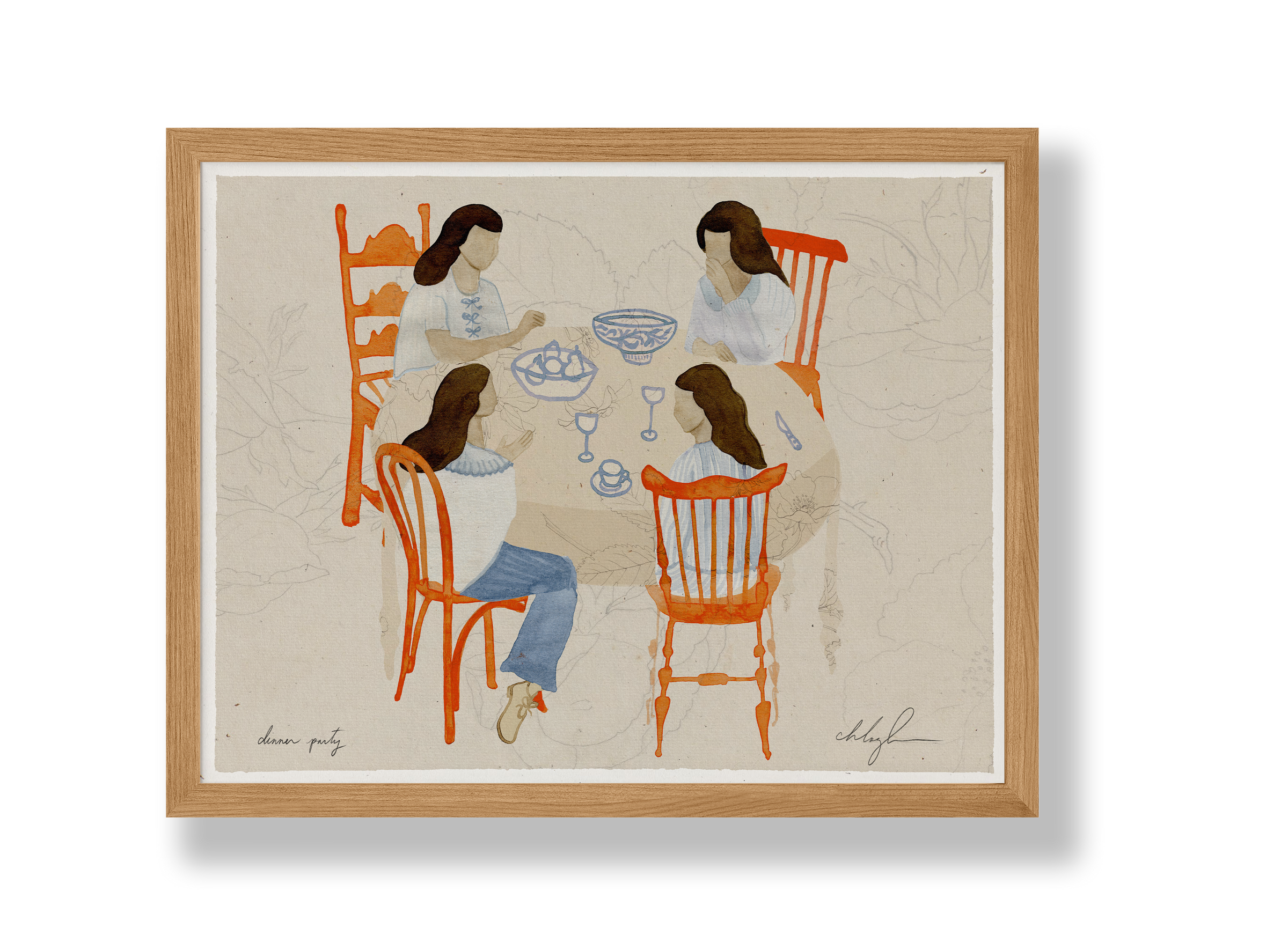Dinner Party captures a moment of quiet connection — conversation, shared presence, and the beauty of simply being together.A gentle ode to gathering and friendship, this piece is perfect for dining spaces or anywhere that invites warmth and community.