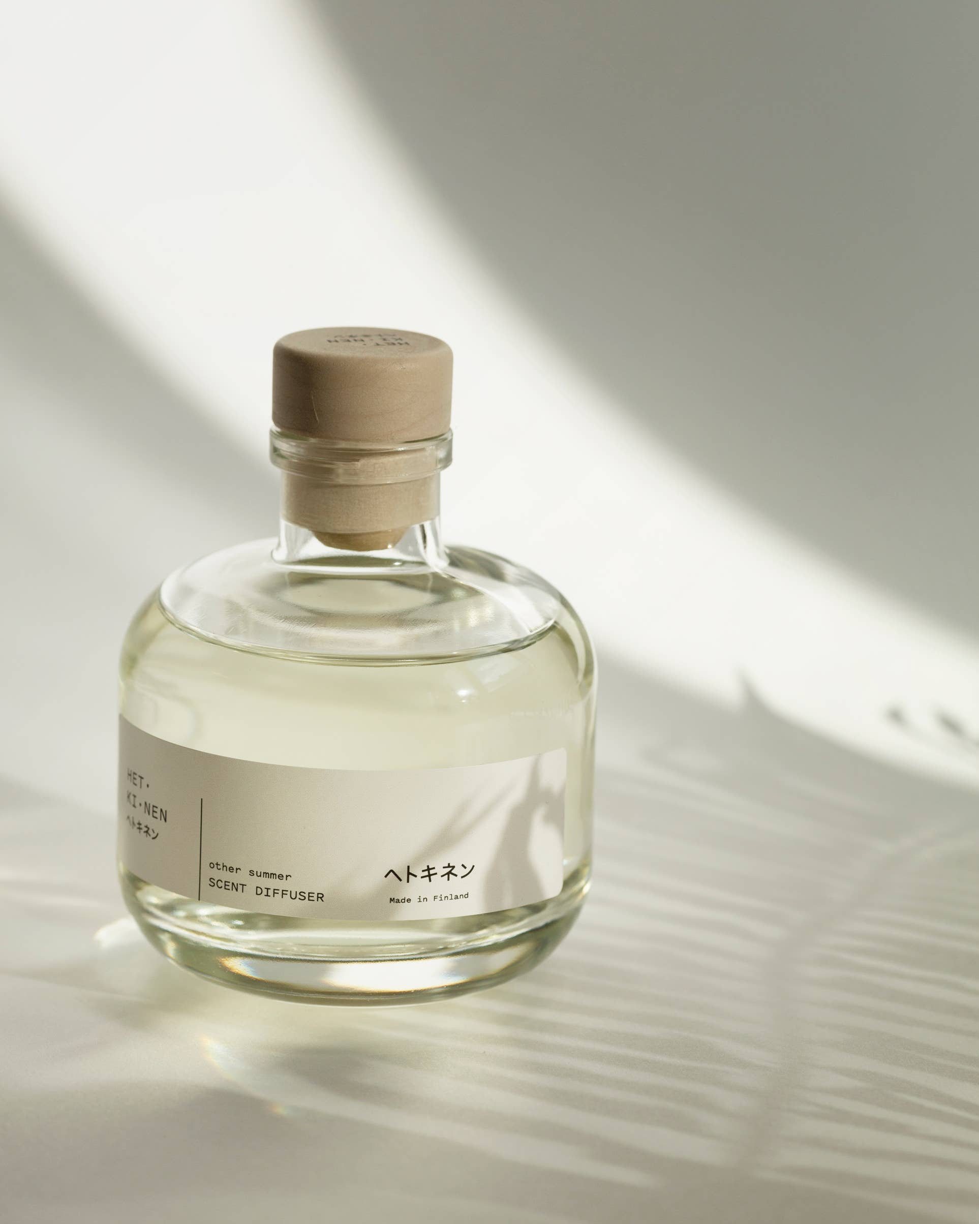 a flowery, fresh, summery Natural room fragrance Glass bottle with a blend of essential oils and natural mixture for improved fragrance diffusion. Sealed stopper and 2 natural pine wood sticks. Will scent a room for 3+ months. Scent your livingroom, bathroom or office. TOP NOTES lemon HEART NOTES white rose BASE NOTES vanilla Package size 100 ml Country of origin Finland Ingredients:isopropylidene glycerol, citrus, limonum oil, citrus bergamia oil, lavandula angustifolia oil, cupressus sempervirens oil, rosa damascena oil, vanilla planifolia oil, limonene, linalool, geraniol, citral, citronellol, farnesol, isoeugenol, coumarin, benzyl benzoate, eugenol YES natural, vegan, cruelty free, sustainable, plastic free NO preservative, synthetics, water, colour, plastic How to & usage Usage room scent