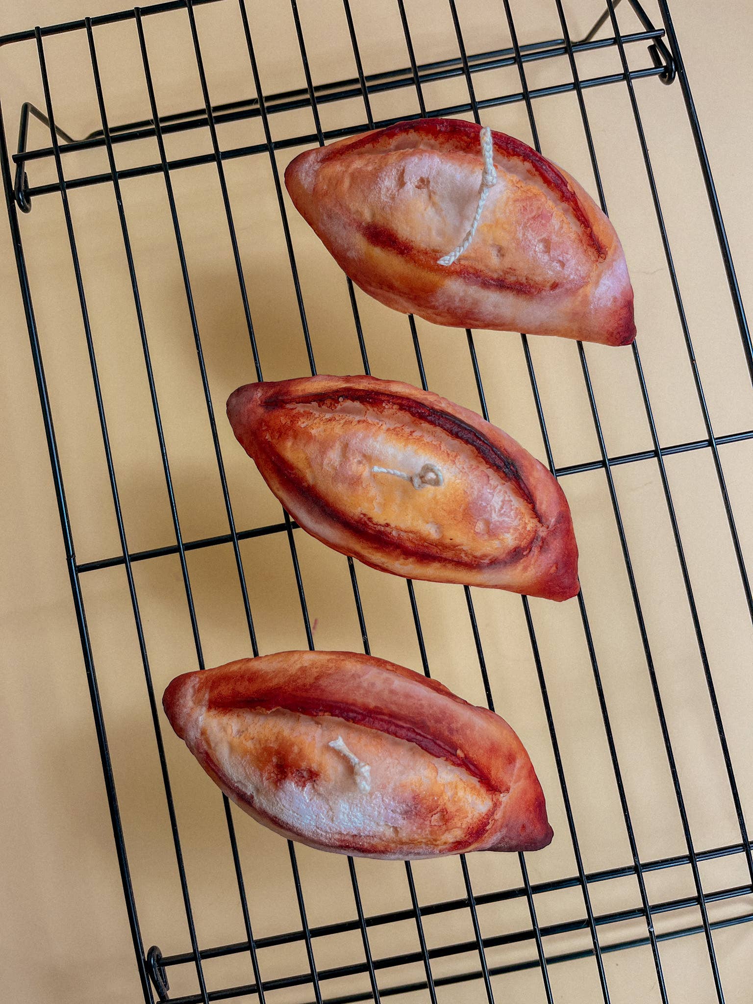 Are you a bread lover? Then this French baguette candle is everything you knead. Hand-painted with candle ink and PanPastel for deliciously realistic details, these soy wax baguettes look fresh from the bakery—right down to the bakery-style packaging.