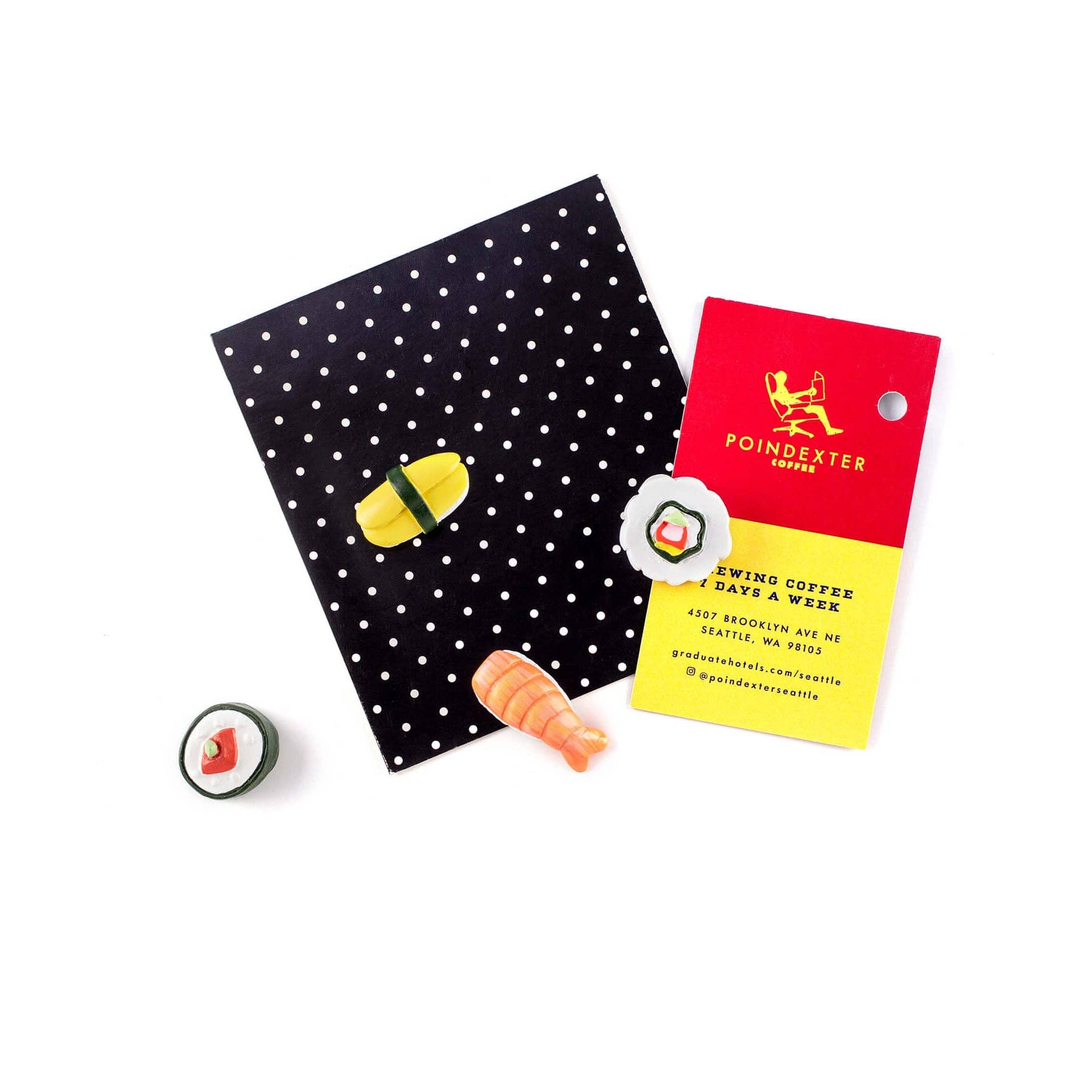 DETAILS Sushi That Sticks, Without the Soy Sauce! Craving a touch of culinary art for your space? Dive into our delightful sushi magnets. Hand-painted with precision, these sushi-inspired pieces look like delicacies, but deliver with a magnetic hold that's as strong as wasabi! FEATURES * Detailed Designs: Each sushi piece is hand-painted * Set of Four: A delightful mix of sushi varieties * Perfect Dimensions: Each magnet is approximately 3/4 in (1.9 cm) wide * Strong Hold: Backed by super strong mighties® magnets for a reliable grip DIMENSIONS * Sizes vary, approximately 3/4 in (1.9 cm) wide