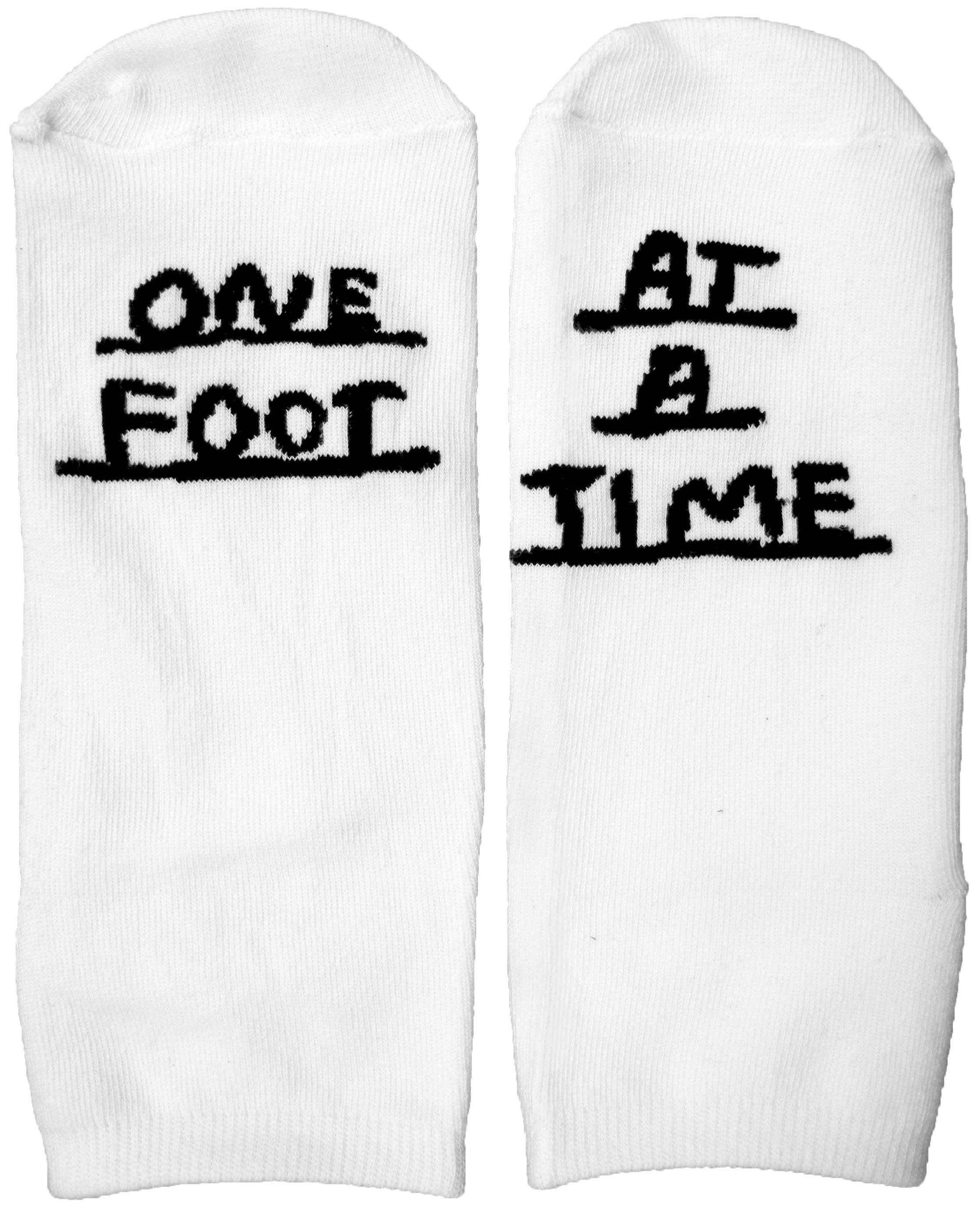 A literal reminder to just keep putting one foot in front of the other. Knit socks sized 8-10 women's One size fits most