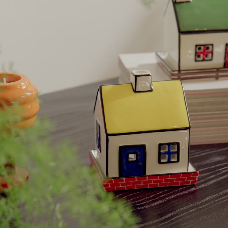 Created in collaboration with English ceramicist and illustrator Hal Haines, this hand-painted tealight holder adds a touch of storytelling charm to any interior. Inspired by traditional English table settings and Haines’ unique illustrative style, each ceramic piece features expressive details and whimsical character.The design includes two components—a base and a decorative lid—that softly glow when a candle is lit inside. Each tealight is individually hand-painted, giving every piece its own personality and subtle variations.