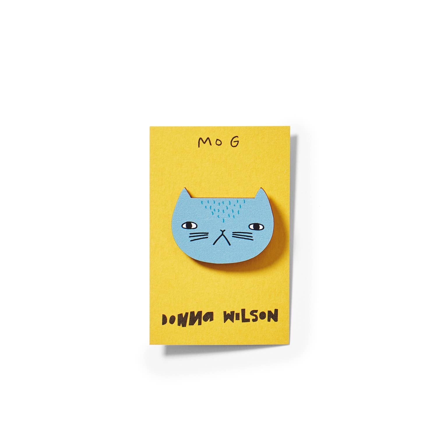 A printed wooden pin badge featuring a grumpy blue cat with plenty of attitude. Made in the UK from sustainably sourced 4mm cherry veneer plywood and secured with a metal butterfly clutch. Please note: natural variations in wood mean each badge may differ slightly in colour, grain, and texture.